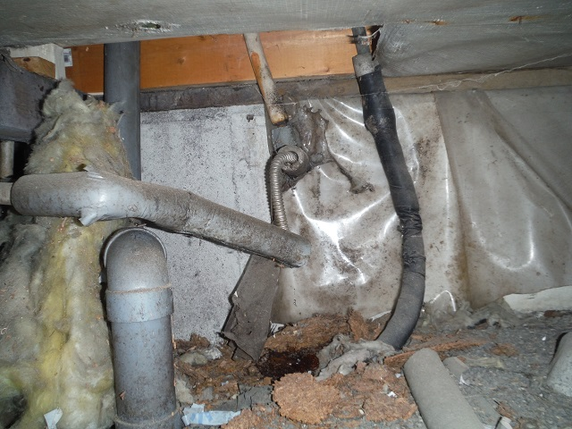 床下の漏水は発見に時間がかかる場合が多く、湿気も抜けにくいため、腐朽菌やシロアリの被害につながります。原因は配管などの老朽化によると考えられます。